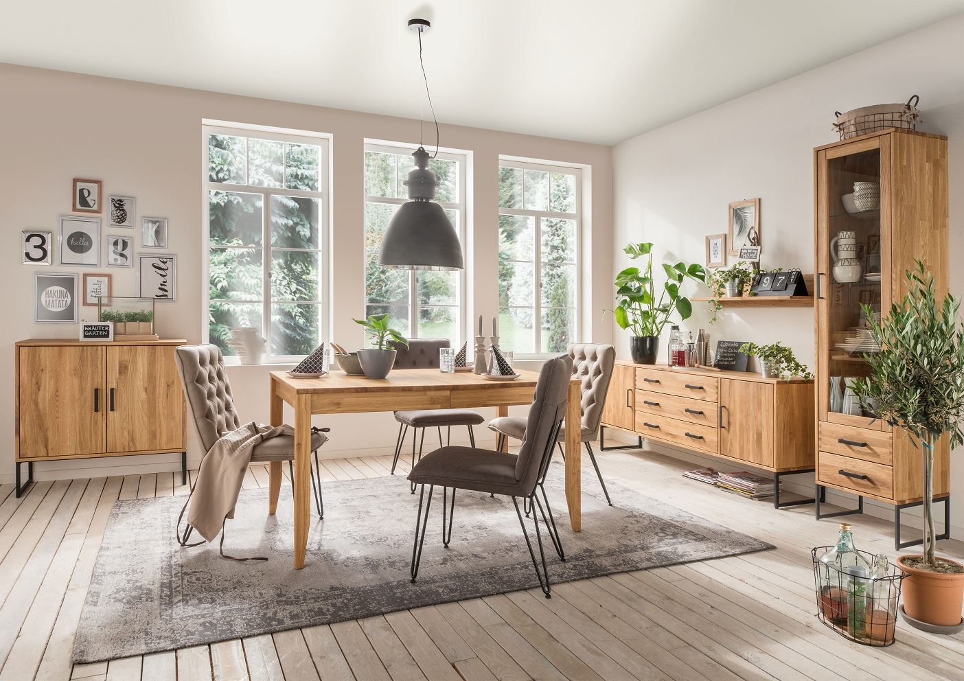 Massive Eiche in unterschiedlichen Beiztönen