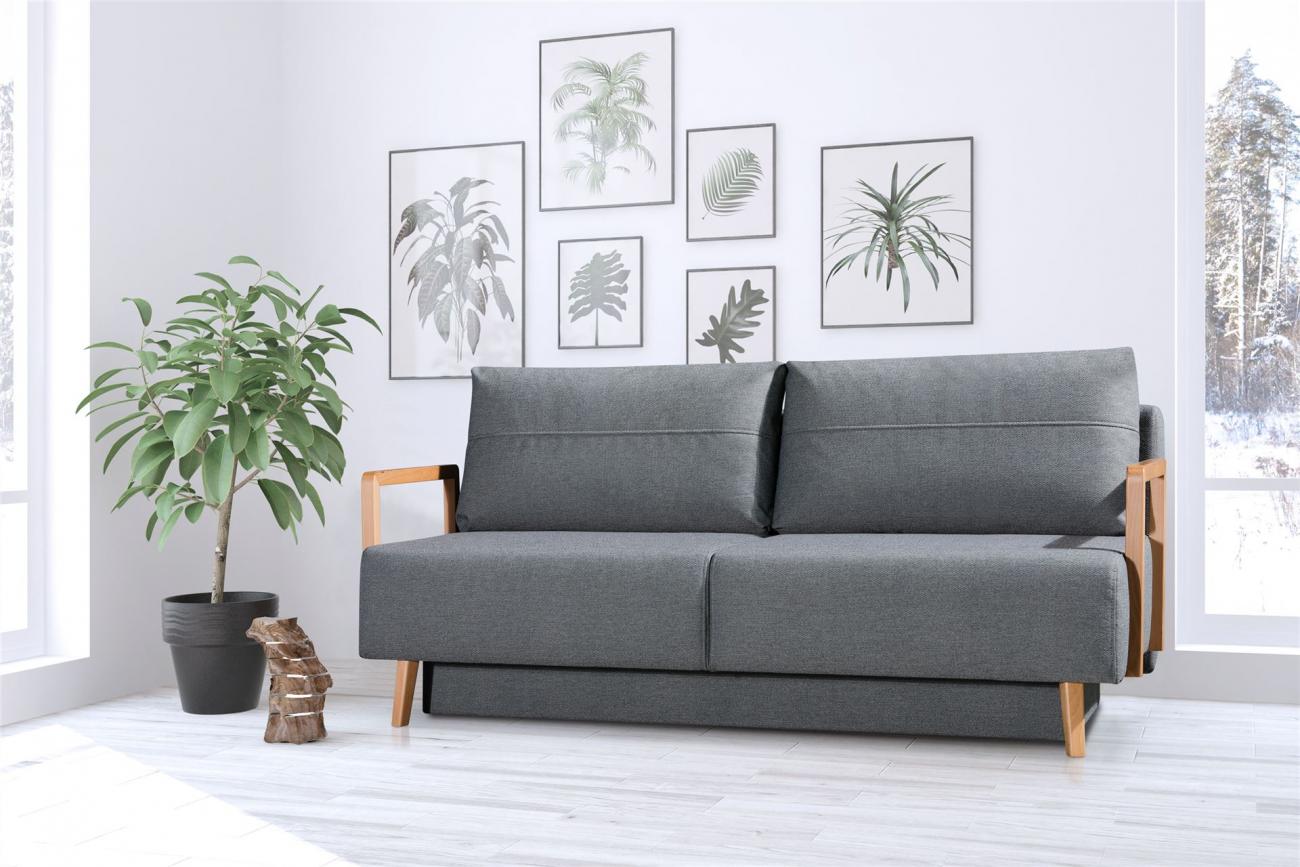 Polyschaum im Sitz und Rücken, Holzarmlehnen in Buche, Wenge oder Eiche Natur, Bettkasten, Liegefläche 145x192cm. Modell LS111119